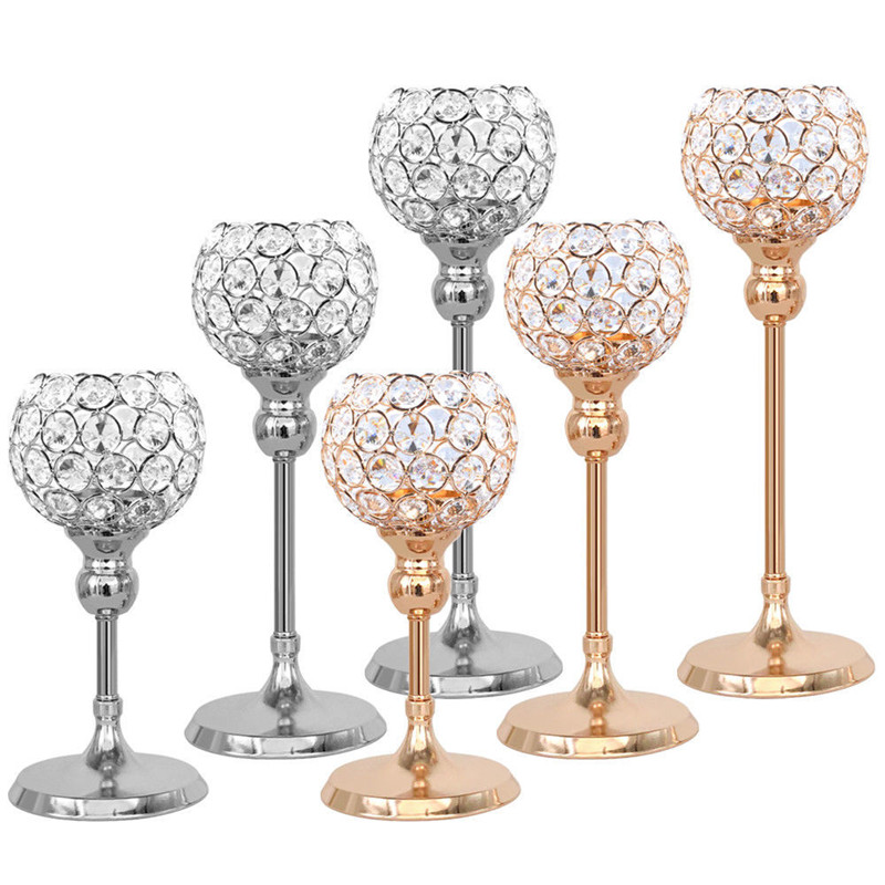 Handmade Crystal Beaded Wedding Table Centerpiece Silver Plated Candle Stand Set Event
