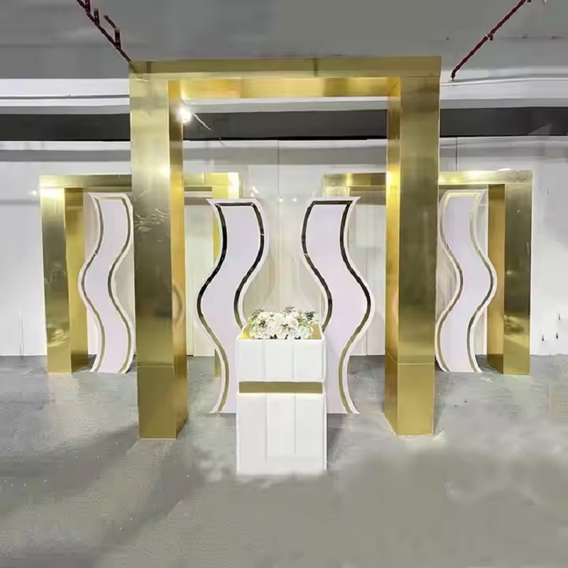 Factory Price New Shiny Metal Arch Stage Backdrop Flower Frame Stand for Wedding Event Decoration