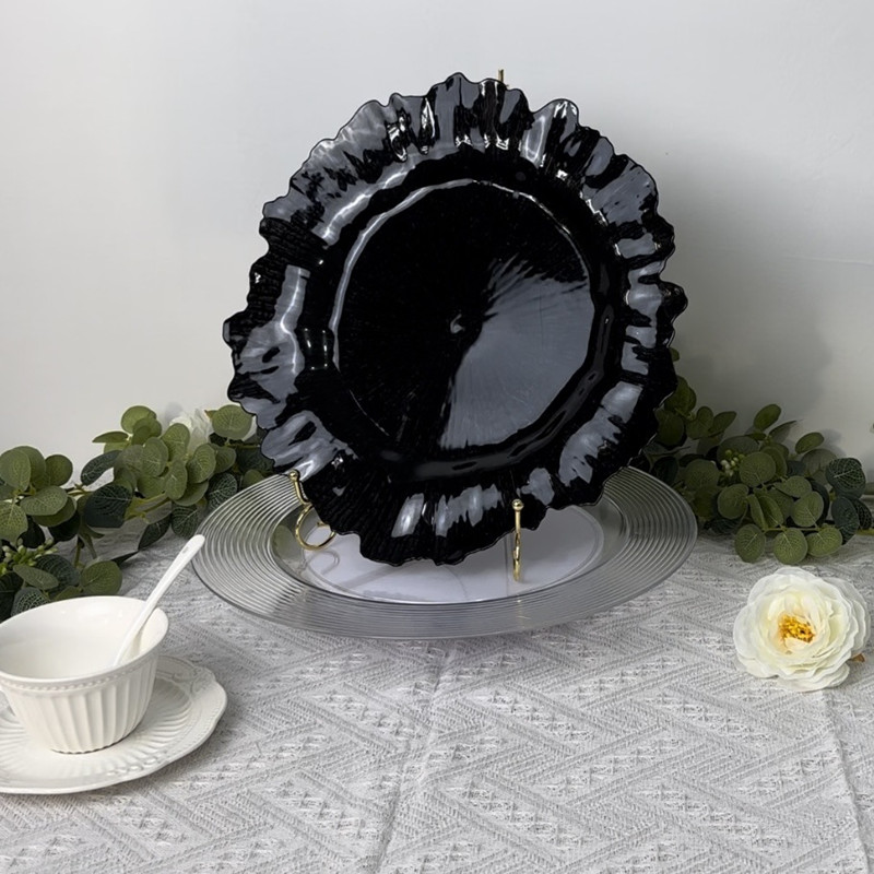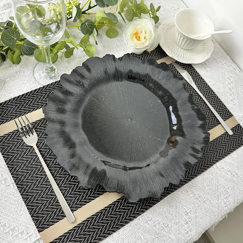 | Product Name | Black Reef Chargers Charger Plates Wedding Reception Modern Plastic Plate Chargers |