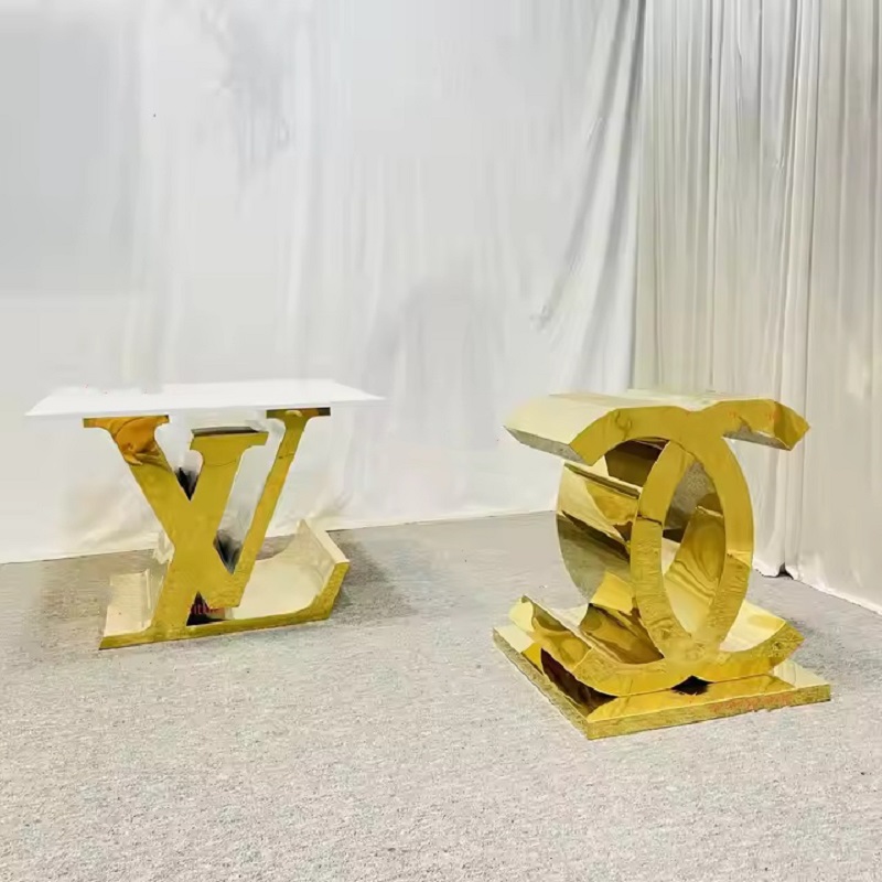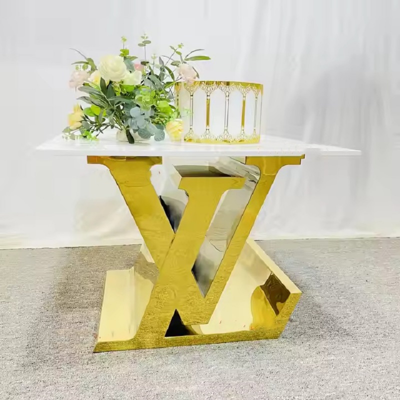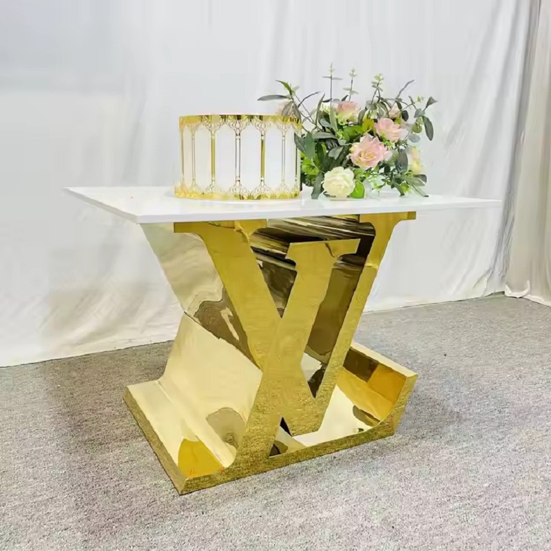Foshan Wholesale Stainless Steel Gold Cake Table Wedding Cake Table