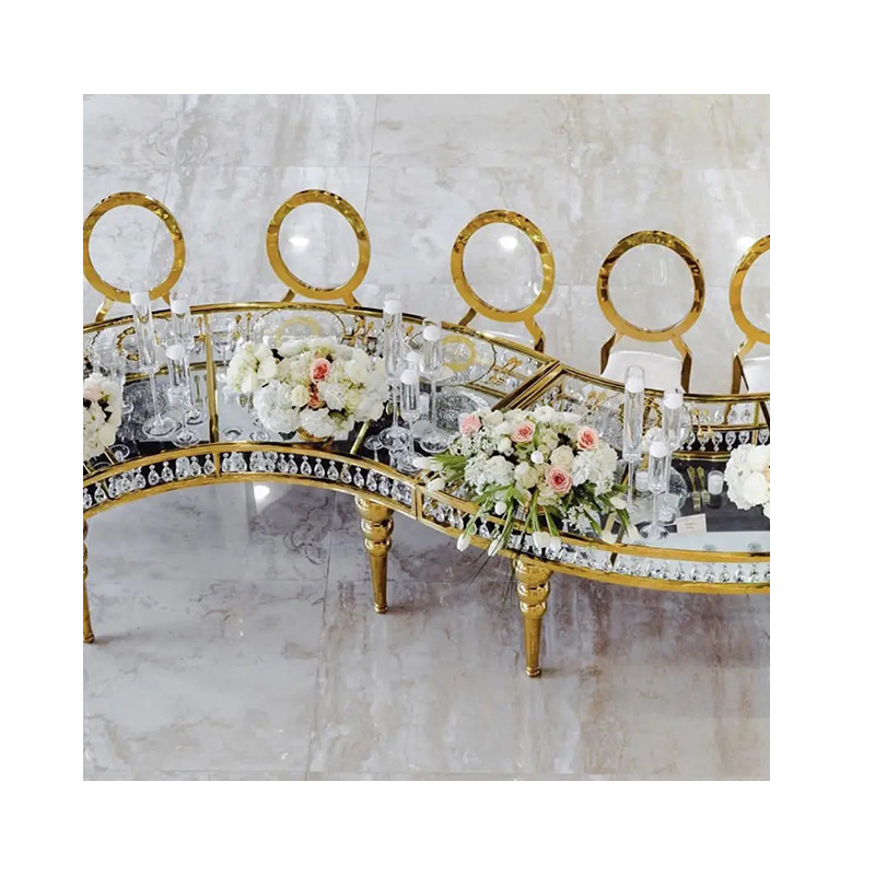 PRE: Wholesale Stainless Steel Mirrored Glass Dining Table Wedding Table