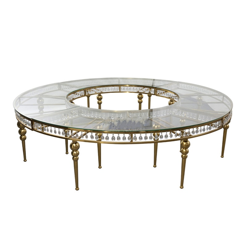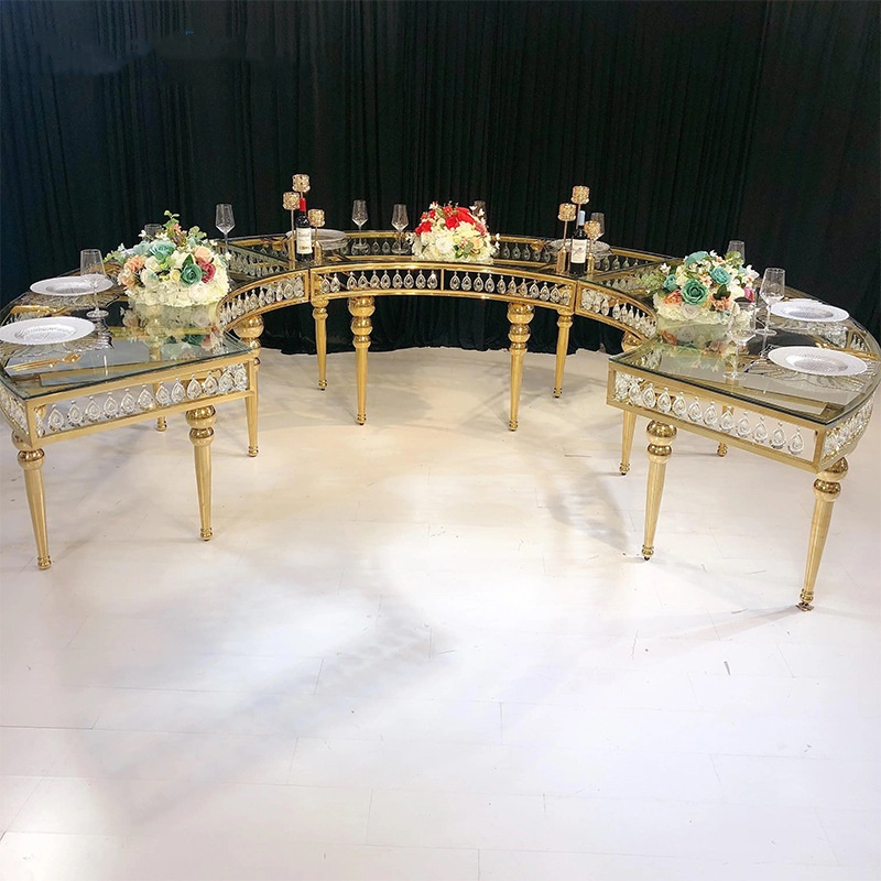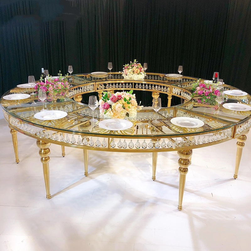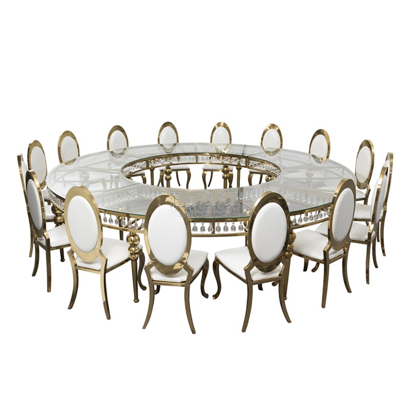 Luxury Chair and Tables Set Stainless Steel Gold Legs Glass Top Tables for Wedding Events Dining Banquet