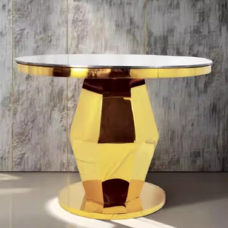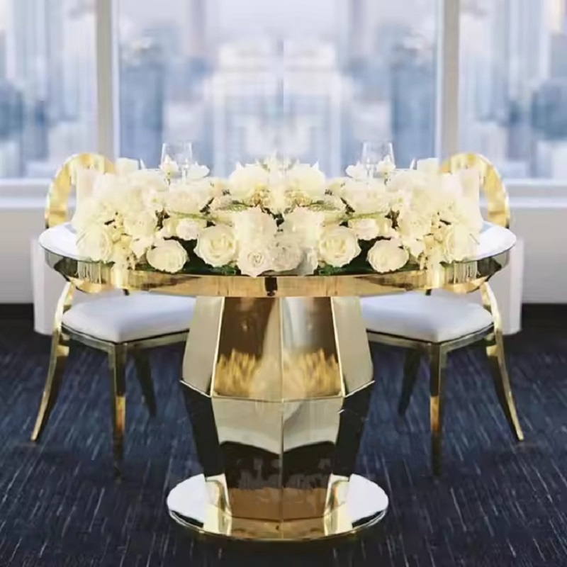 Luxury Gold Diamond Shaped Cut Surface Wedding Cake Table Round Outdoor Furniture for Hotel Garden and Sofa Set