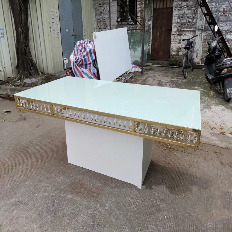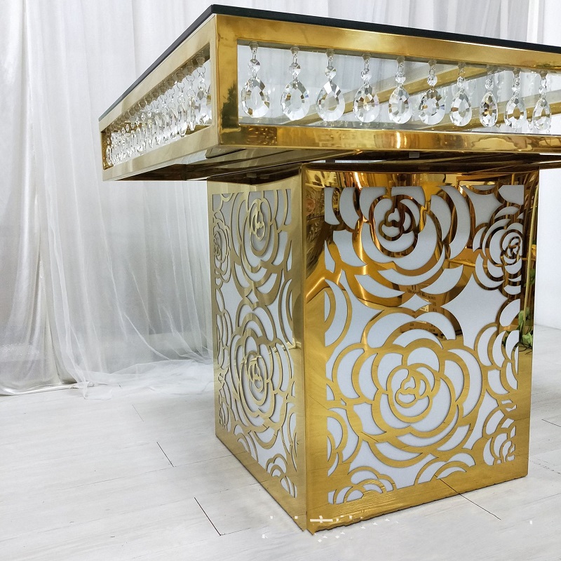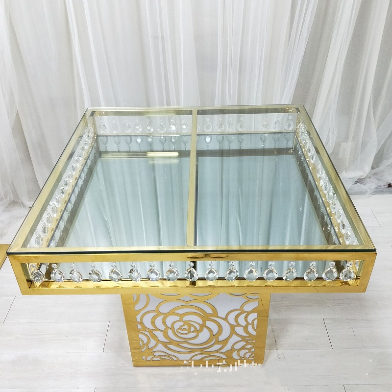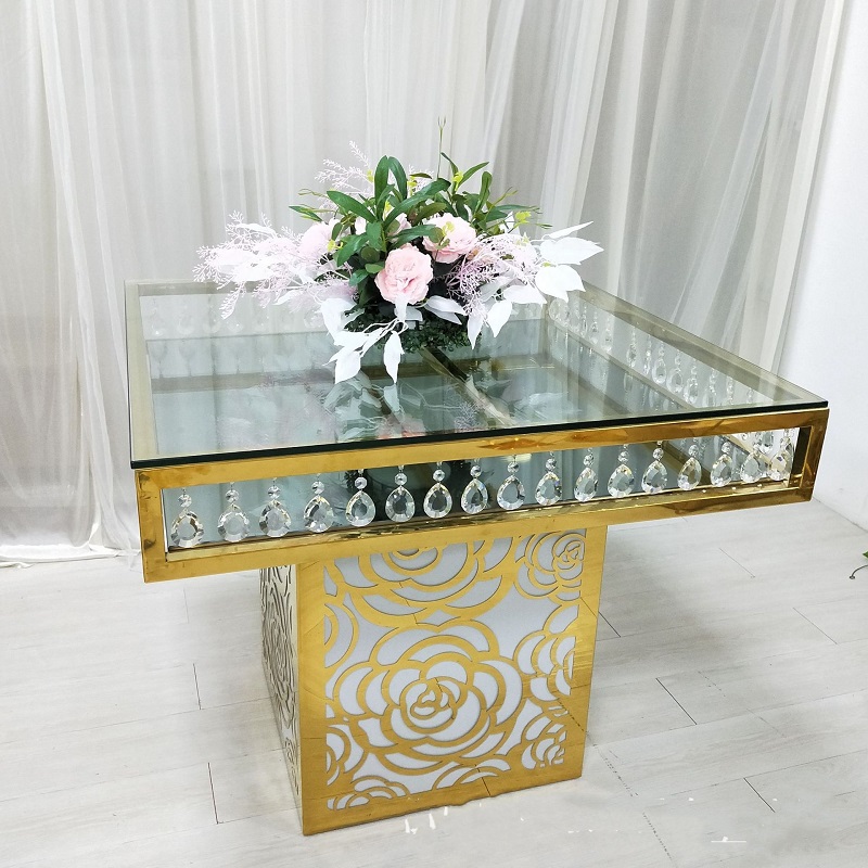 Luxury Wedding Furniture Rose Pattern Design Square Clear Transparent Glass Table Top Crystal Mirror Cake Tables
