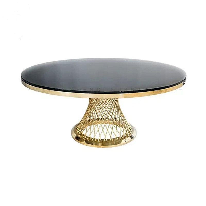 Most Popular Metal Round Coffee Table Gold Stainless Steel Furniture Indoor Sitting Room Glass and Marble Top Table
