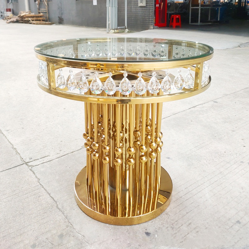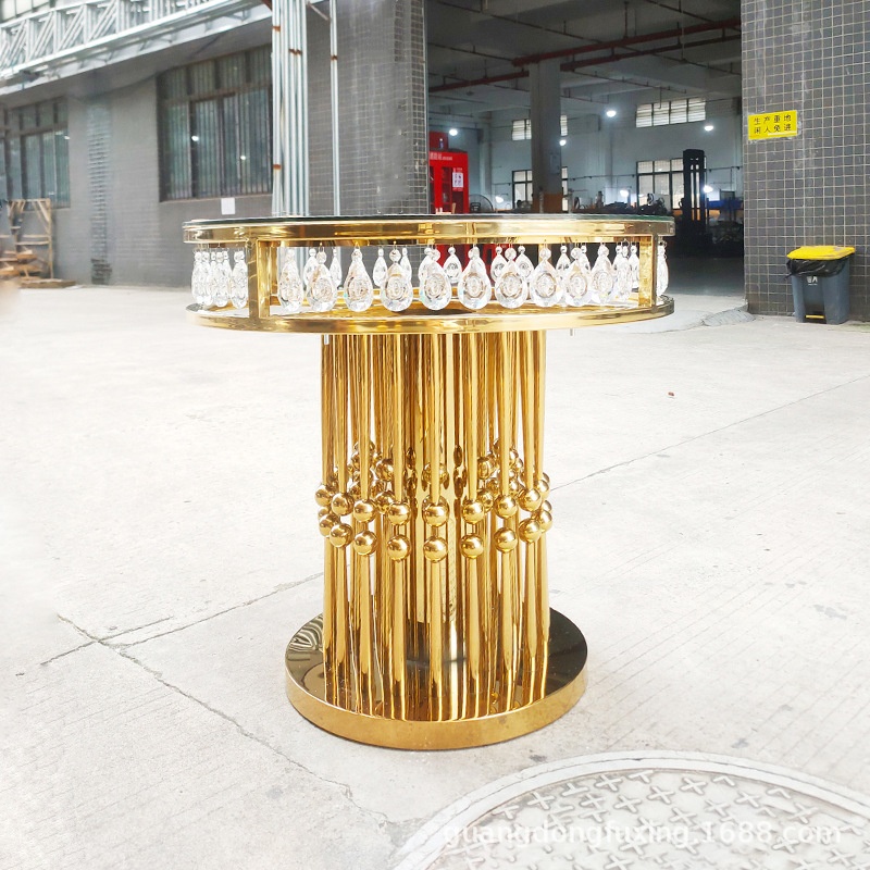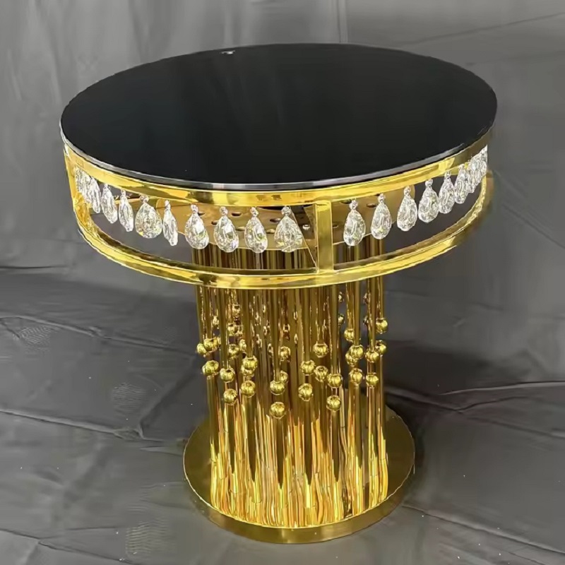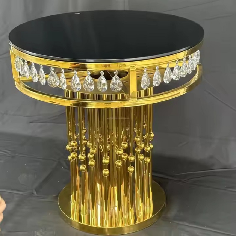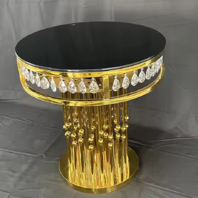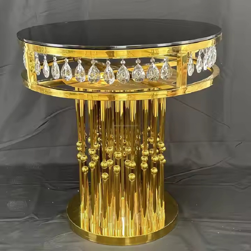 New Design High Quality Wedding Furniture Table Gold Stainless Steel Round Cake Table
