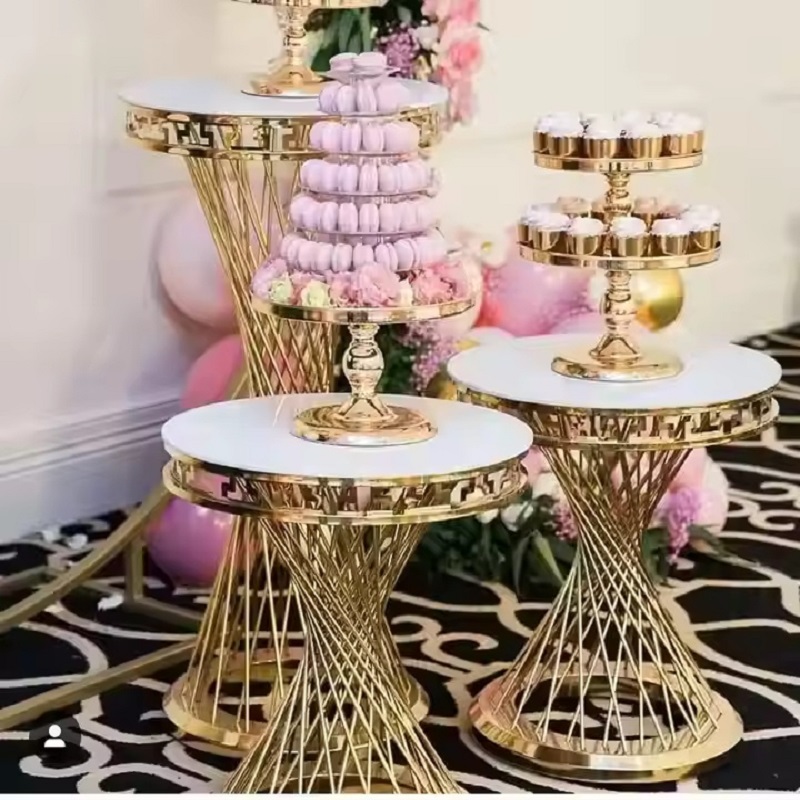 Wedding Cake Stand Table Gold Modern Luxury Marble Top Wedding Decorated Cakes Sweet Table for Wedding