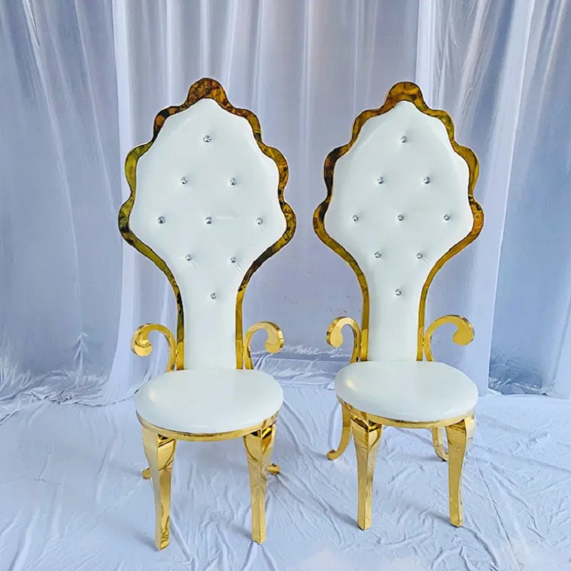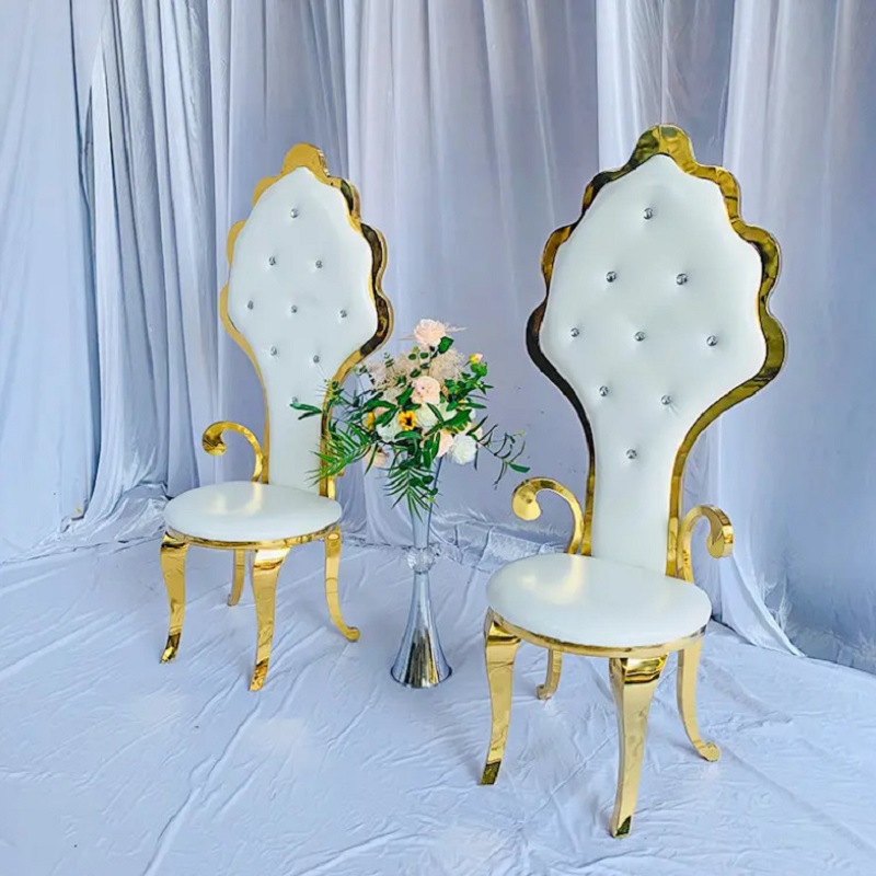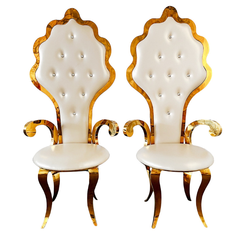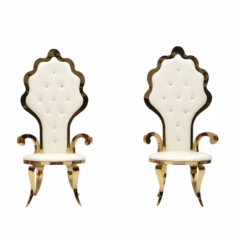 Wholesale Gold Throne Chairs Royal Luxury Wedding Chair for Groom and Bride Stainless Steel Gold High Back Throne Chairs